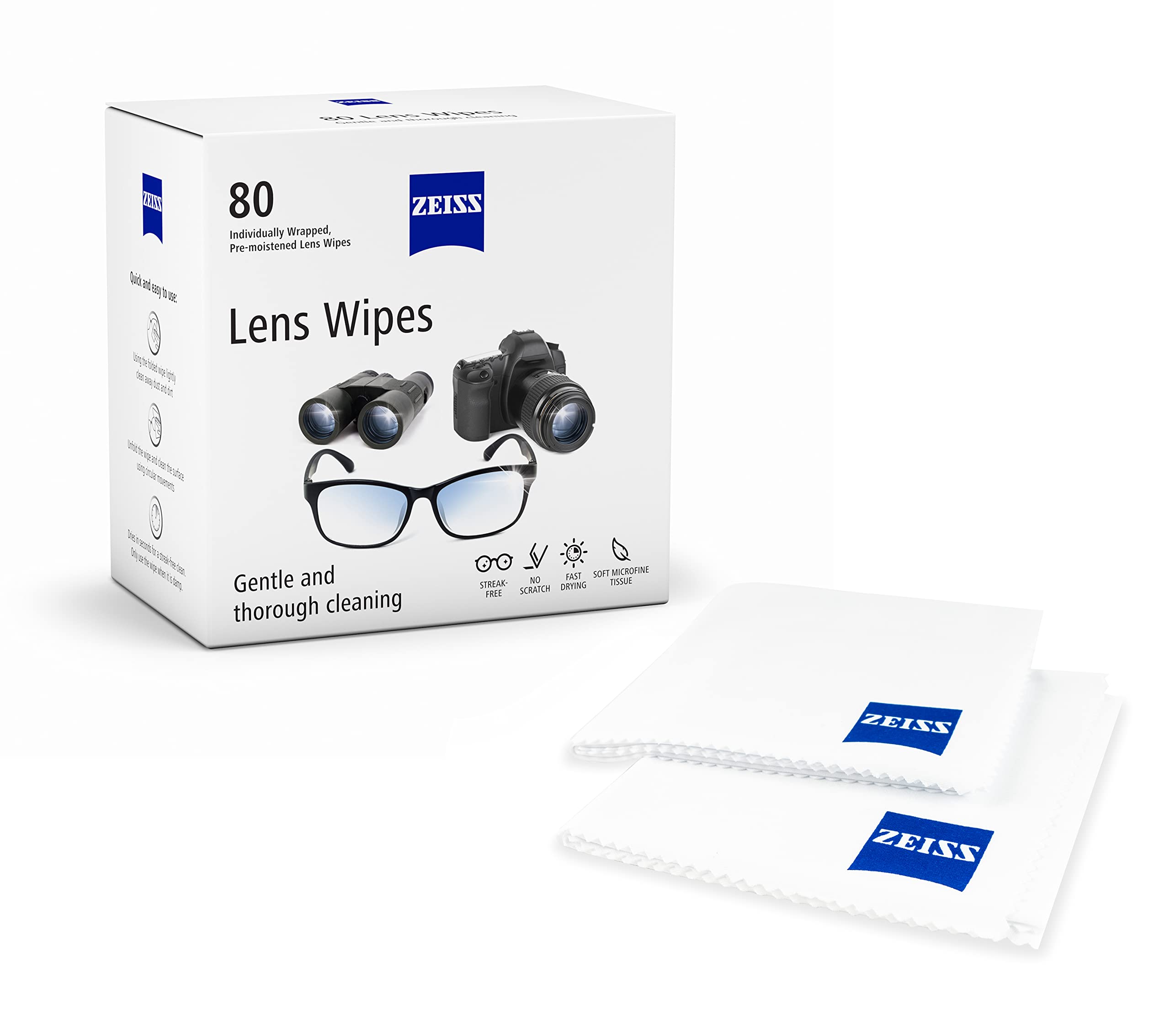 Amazon Com Zeiss Lens Wipes For Eyeglasses 80ct With Two Jumbo Reusable Microfiber Lens Cloths 12x16in Health Household